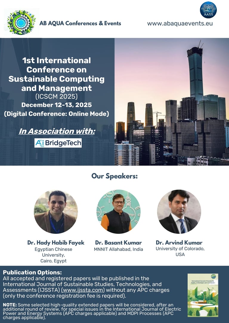 The 1st International Conference on Sustainable Computing and Management (ICSCM 2025) represents a landmark initiative in the global discourse on sustainability, innovation, and interdisciplinary strategy. Organized under the auspices of AB AQUA and held in a fully digital format on December 12–13, 2025, ICSCM 2025 stands as a pioneering platform aimed at advancing research dialogues across the converging fields of computing, environmental governance, digital management, and systemic sustainability.