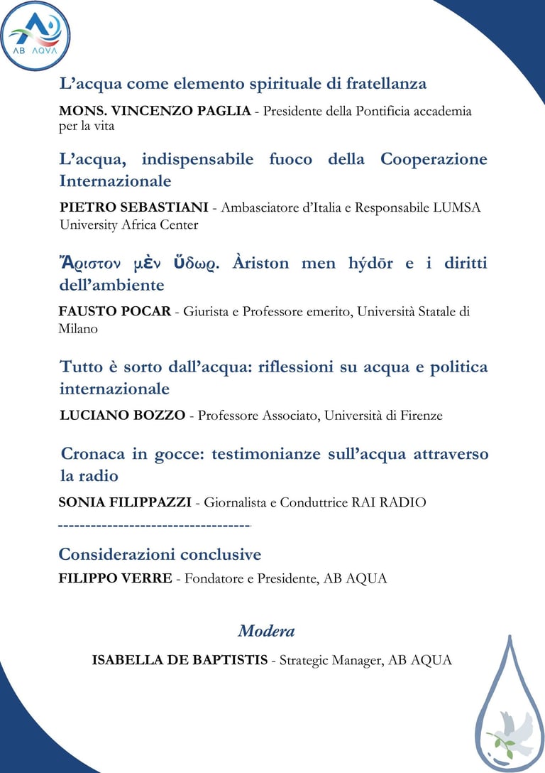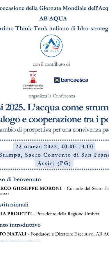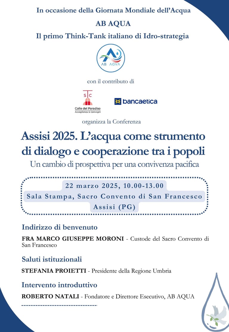 Assisi 2025. L’Acqua come Strumento di Dialogo e Cooperazione tra i Popoli. Un Cambio di Prospettiva per una Convivenza Pacifica